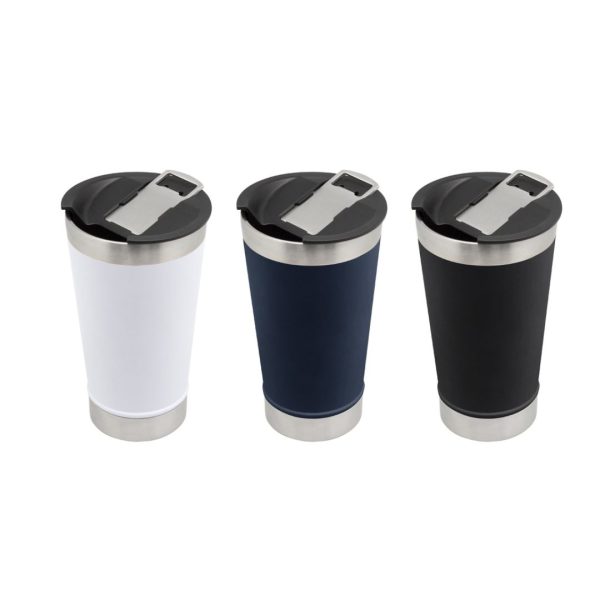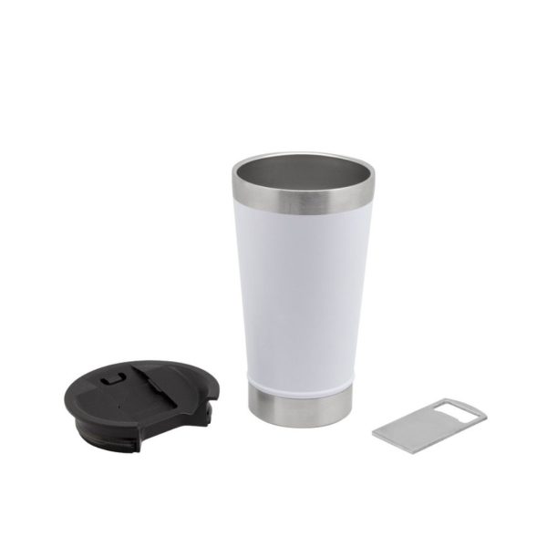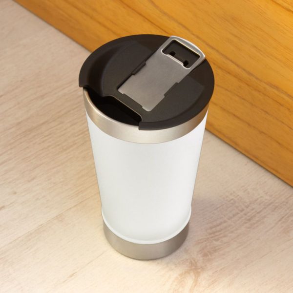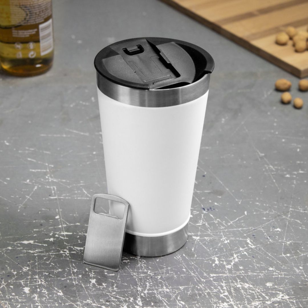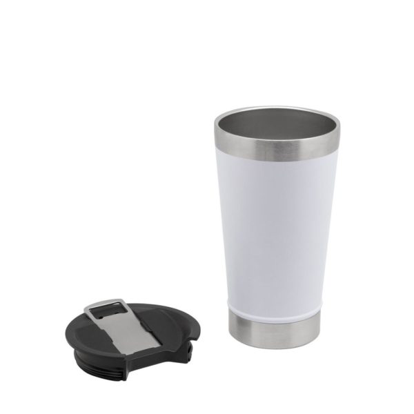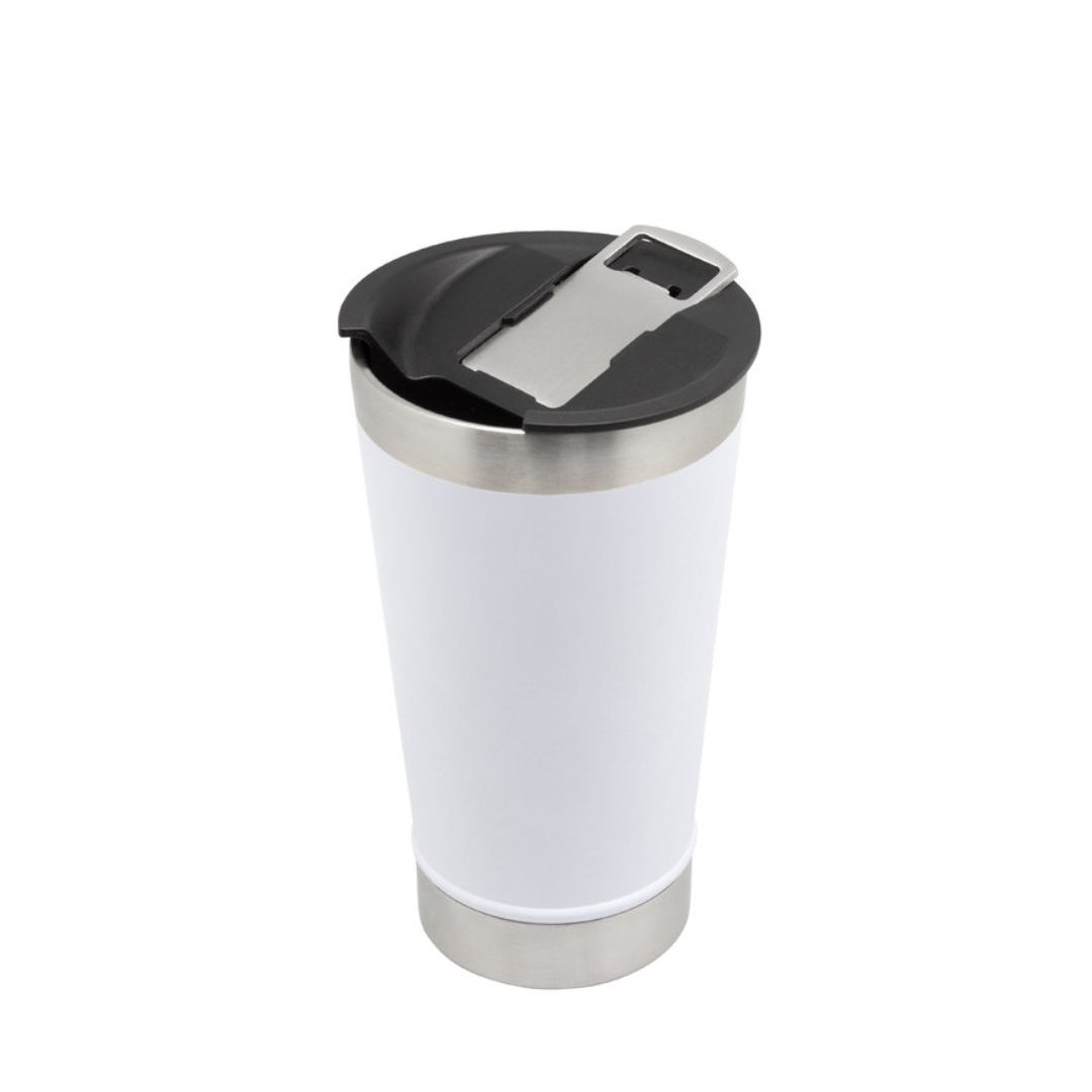Descripción del producto: Mug doble pared, sellado al vacío. Interior en acero 304 y exterior en acero 201. Tapa plástica con boca ancha a presión con anillo de silicona. incluye abridor de botellas en acero inoxidable 430. Pintura exterior con acabado mate. Mantiene hasta 2 hs la temperatura de las bebidas calientes y 4 hs de las bebidas frías.