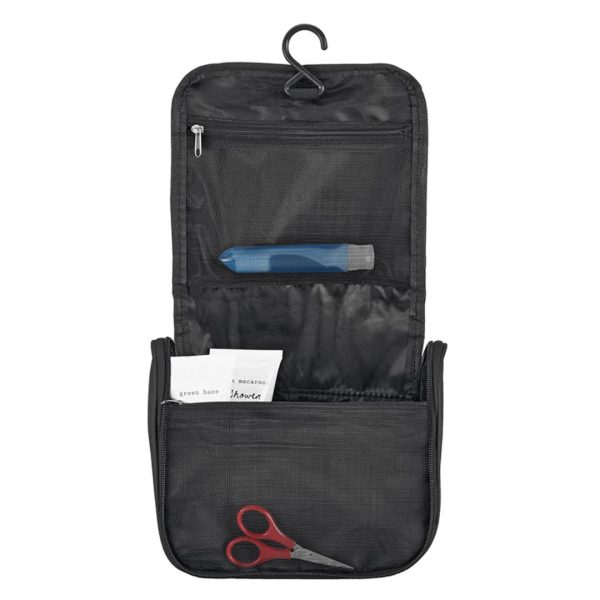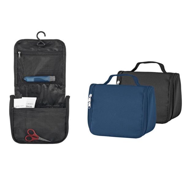 Descripción del producto: Necessaire de microfibra con compartimento principal, bolsillo de red y gancho para colgar. Cierre de apertura completa. Ideal para viajes.