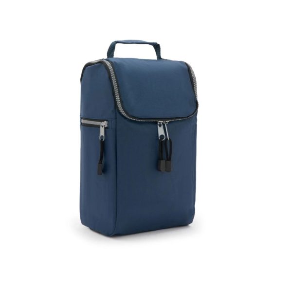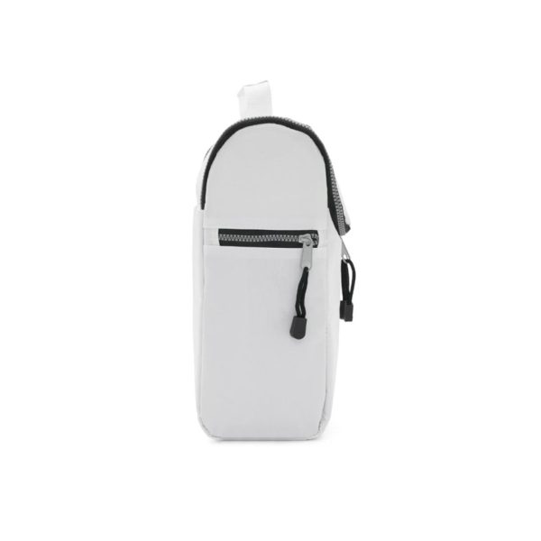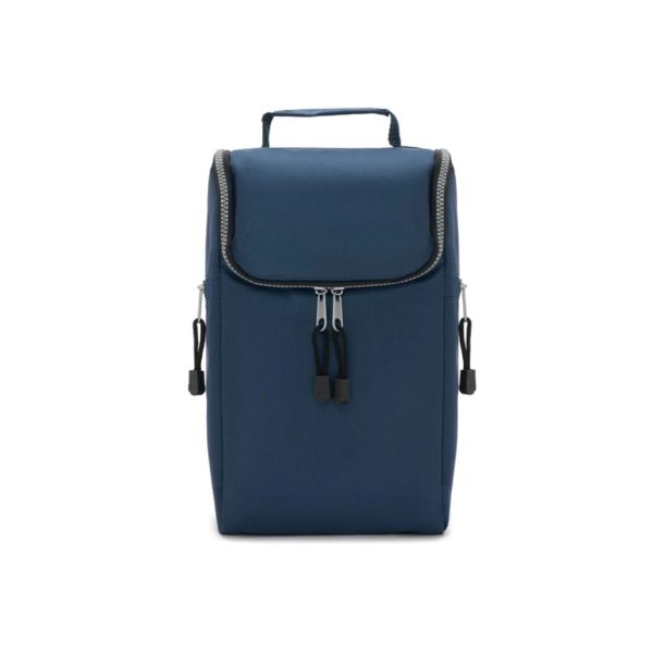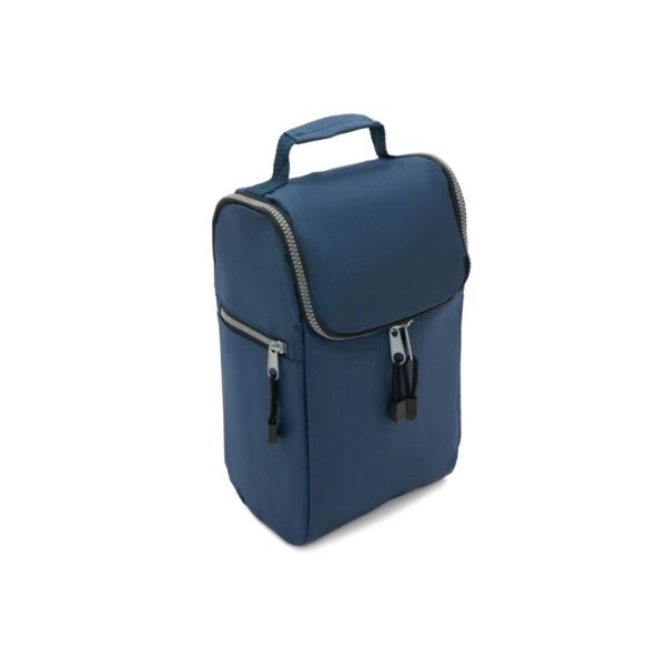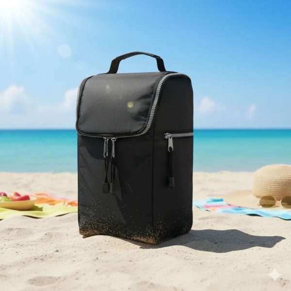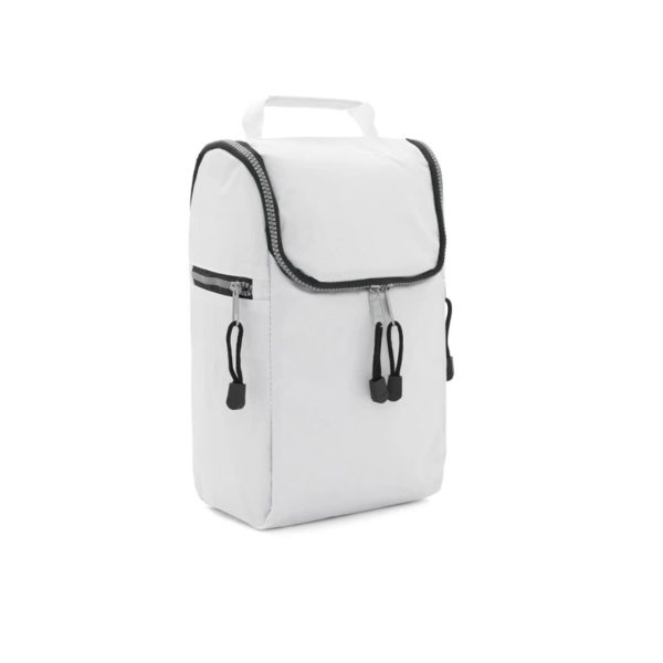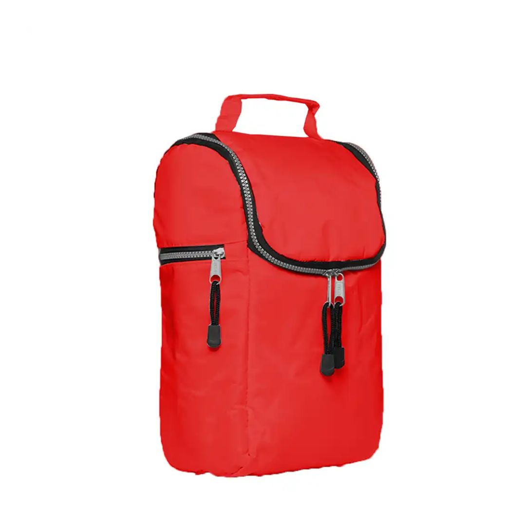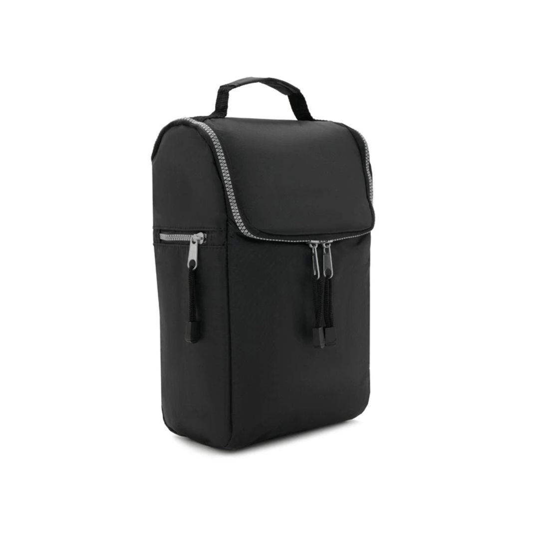 Descripción del producto: Cooler confeccionado en tela Nylon 600D, interior térmico forrado en PVC gris. Bolsillos laterales. Apto para llevar botellas, termos y otros. Colores: Negro, Blanco, Azul y Rojo. Medidas: 28 alto x 20 ancho x 14 base cm. Capacidad: 8 Lts. Tahg.