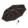 98 cm. 8 gajos. Ancho gajo 37 cm. Largo cerrado 28,5 cm. Largo abierto 55,5 cm. Poliéster Pongee con revestimiento especial hidrófugo, metal y plástico engomado. Paraguas APERTURA Y CIERRE AUTOMÁTICO. Eje y varillas metálicas. Mango de plástico engomado con correa cordón color negro. Botón a presión. Cierre con correa de velcro.