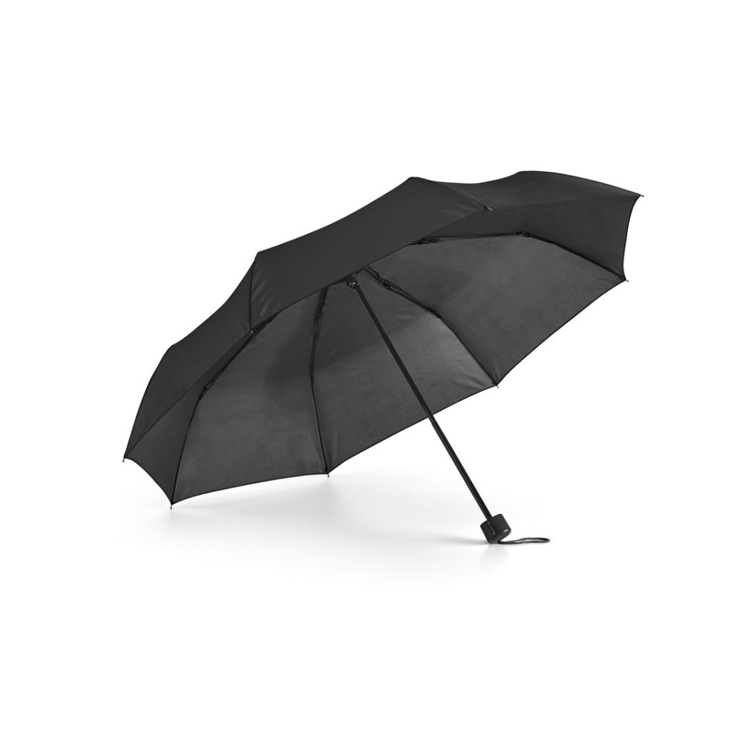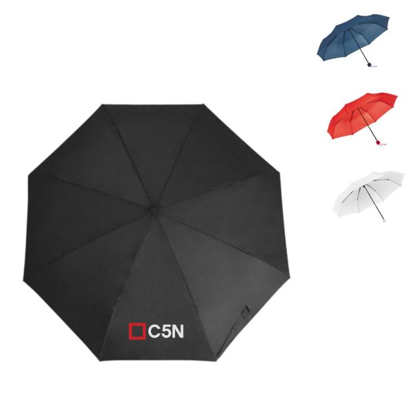Diseño y tamaño ideal para transportar, posee correa para colgar, mango de plastico de color. Incluye funda mismo color. De 8 gajos de estructura en 3 partes metálica, botón de bloqueo, apertura manual. Poliéster 190T.  Cerrado: 4 x 24 cm Desplegado: 96 x 55cm