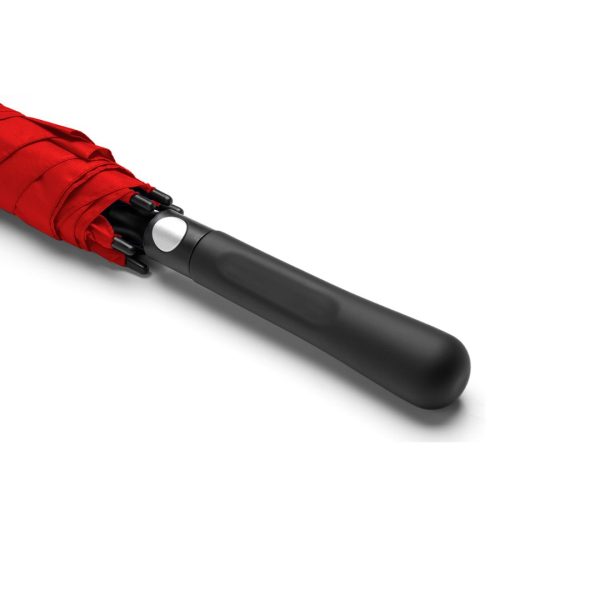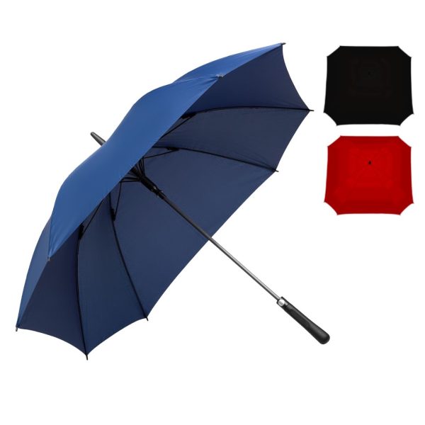 Descripción general del producto: Realizado en Polyester 190T y Pongee, cuenta con sistema Wind Proof dual flex y costillas/ribs de nylon, otorgándole resistencia y flexibilidad. Posee mango plástico con rubber coating. Medidas: Largo 95 cm x diámetro 120 cm. Wagner.
