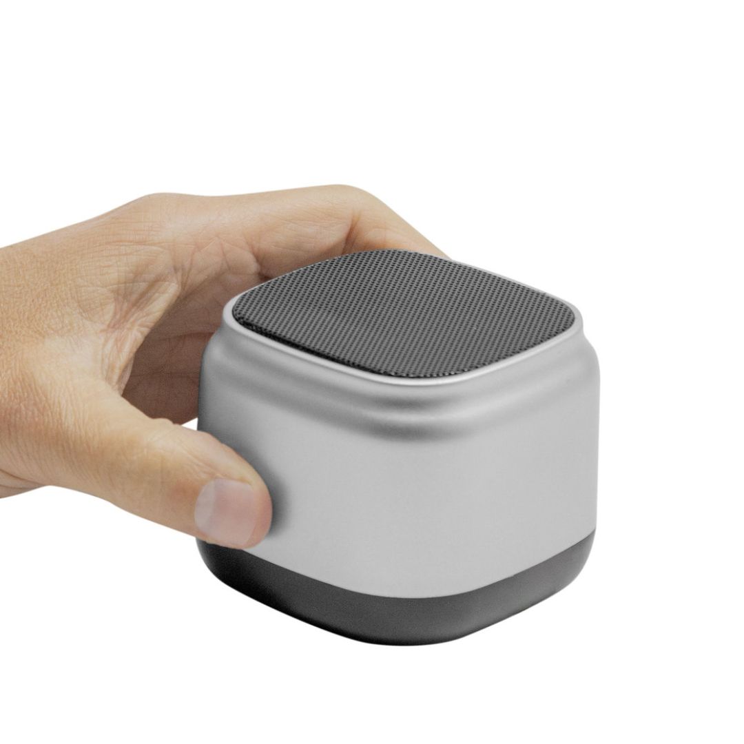 Descripción del producto: Parlante bluetooth. Posee botonera de silicona en la base y malla metálica negra en la parte superior. La base del parlante es antideslizante. Micrófono incorporado. Permite recibir llamadas. Cable de carga y conexión USB tipo C color negro.