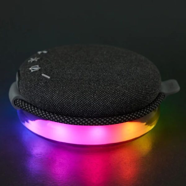 Descripción general del producto: El parlante Fullmoon cuenta con luces led multicolor y una correa ajustable para que lo lleves a donde quieras. Está fabricado en ABS y silicona, con un recubrimiento de tela. Su capacidad es de 1800 mAh, ideal para acompañarte en tu día a día y disfrutar de tu música en cualquier ocasión. Kingtech.