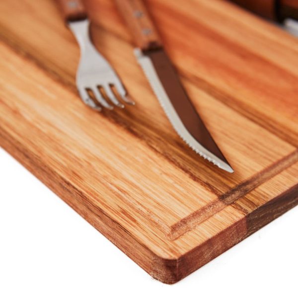 - Plato rectangular de madera de Leuka con canal para goteo (29cm x 17,5cm x 1,8cm).
