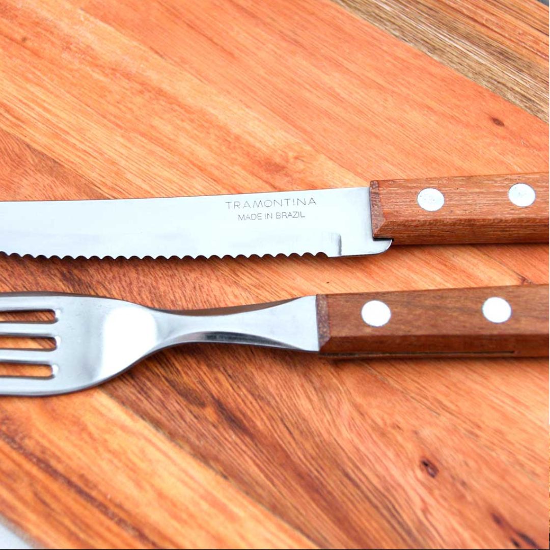 - Juego de cubiertos acero inoxidable con mango de madera t./Tramontina.