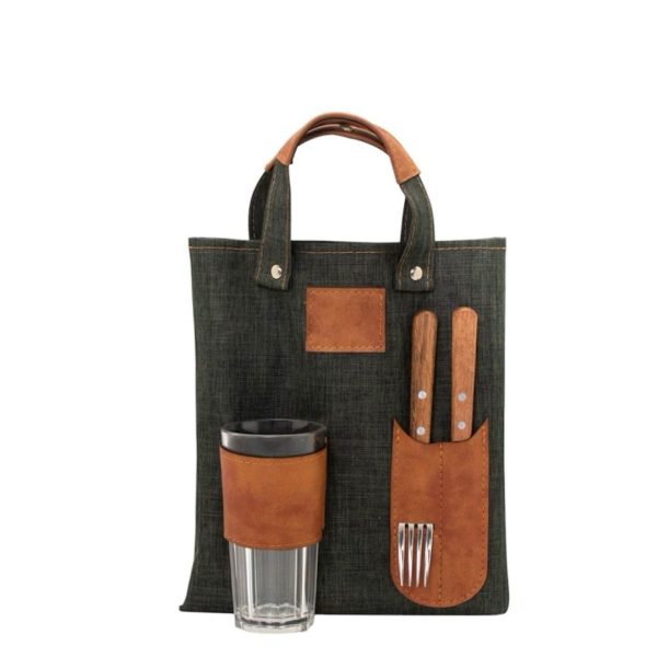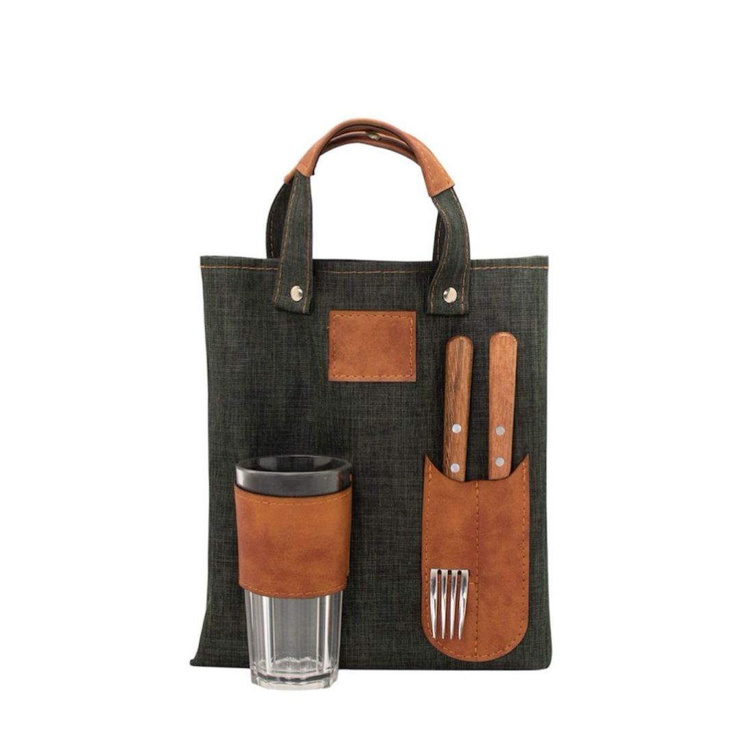 • Estuche cordura melange verde militar con eco cuero caramelo.