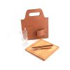 Logo grabado a láser sobre chapita en estuche o sobre plato.