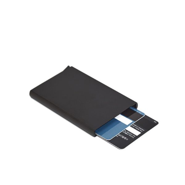 Descripción general del producto: Tarjetero de aluminio diseñado para evitar lectores RFID que puedan poner en peligro la seguridad de tu documentación, tarjetas de crédito o débito, información bancaria, licencias de conducir RFID u otro tipo de tarjetas RFID. Capacidad de hasta 6 tarjetas. Medidas: 9,3 x 6 cm. Tahg.