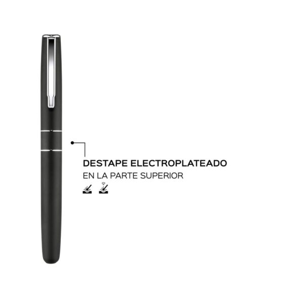 Descripción general del producto: Metal. Cuerpo metálico engomado. Roller con tinta gel. Clip y detalles color plata. Tinta gel negra. Decape electroplateado en la parte superior. Estuche con cierre magnético. Área de impresión: 0,8 x 5 cm. Presentación en estuche con cierre magnético.