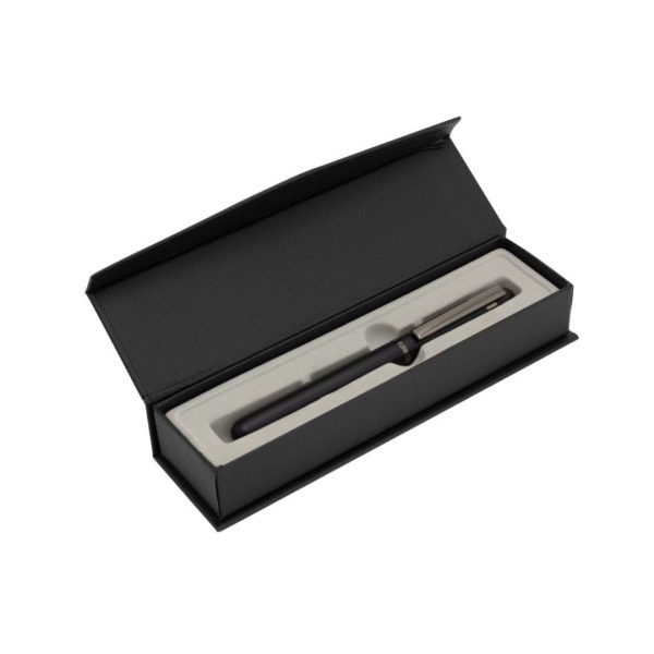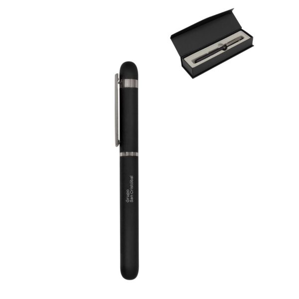 Descripción general del producto: Metal. Cuerpo de aluminio. Roller. Apertura con tapa a presión. Clip y anillos metálicos color plata. Tinta Negra. Destape electroplateado en ambas partes. Presentación en estuche con cierre magnético.