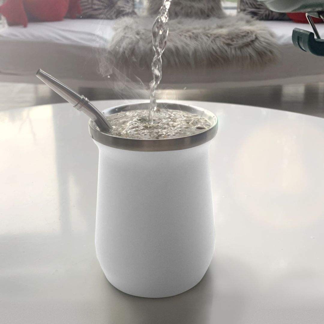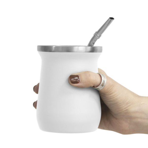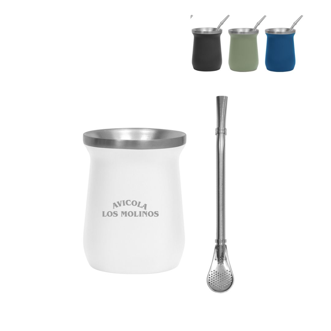 Descripción del producto: 8 x 10,8 cm. Capacidad 300 ml. Mate Mug doble pared, sin tratamiento de vacío. Interior de acero 304 y exterior de acero 201. Mantiene la temperatura por más tiempo. Pintura Powder Coat (pintura mas duradera y resistente a la corrosión y el paso del tiempo). Bombilla de acero inoxidable 304 de 15,5 cm. Presentación en caja de regalo Kraft.