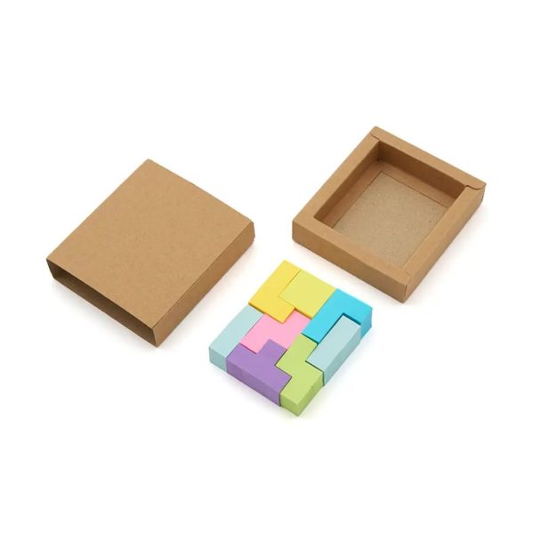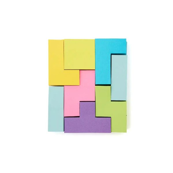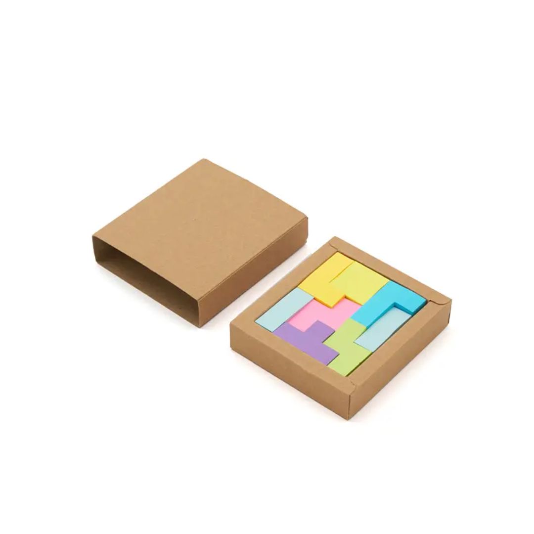 Descripción general del producto: Set de notas adhesivas con diseño tipo Tetrix. La caja esta realizada de cartón reciclado; las notas adhesivas de papel offset (73 gsm); y el empaque de papel kraft (300 gsm). Cuenta con 200 mini notas adhesivas en colores y formas geométricas variadas, presentadas en caja con tapa deslizante. Es ideal para organizar ideas, marcar páginas o dejar recordatorios de forma creativa y colorida. Tahg.