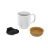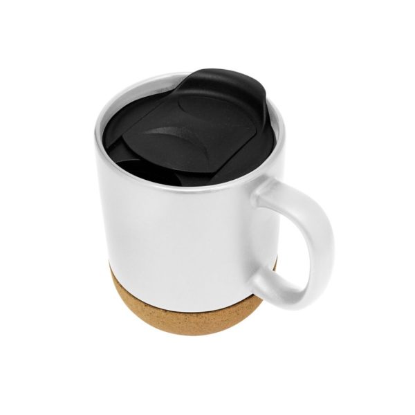 Descripción del producto: Taza sublimable con tapa. Tapa plástica a presión color negro con anillo de silicona. Base de corcho. Pintura con acabado mate. Producto apto para microondas siempre retirando la base de corcho.