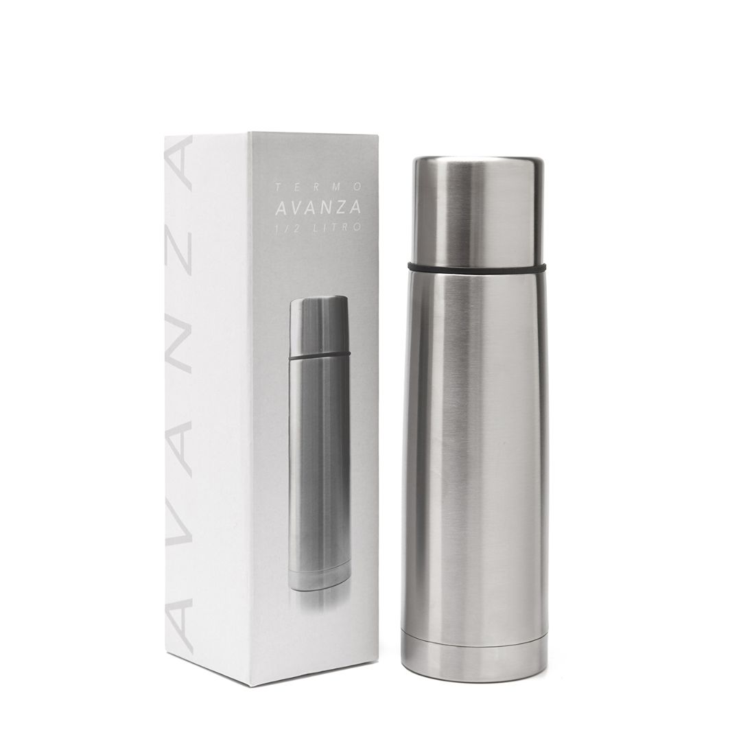 Descripción general del producto: Realizado en acero inoxidable 304. Esmalte especial protector. Su diseño y materiales logran un termo liviano, de gran resistencia y conservación. Producto aprobado por el I.N.A.L. para el contacto con alimentos. Medidas: 23,5 x 6,8 cm. Capacidad: 500 ml. Producto libre de BPA. Tahg