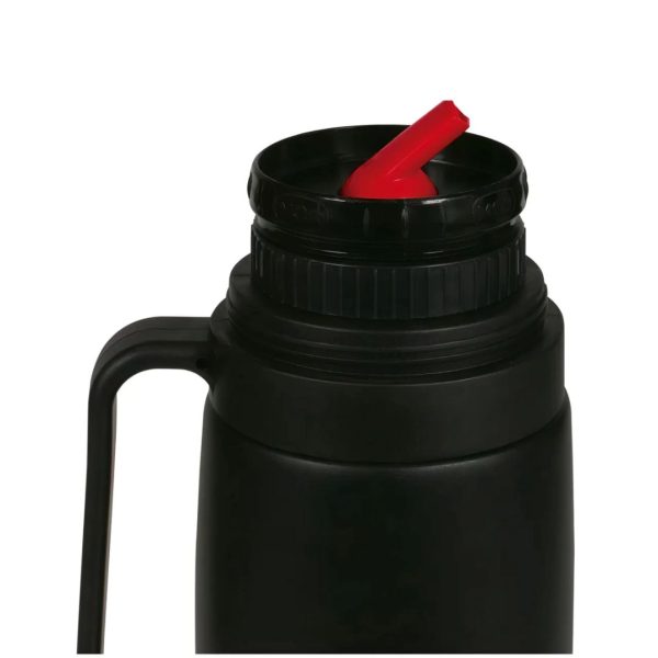 Descripción general del producto: Capacidad: 1 Litro. Materiales: Acero Inoxidable en interior y exterior (Doble pared). Sistema de Apertura: Pico Cebador a Rosca para un vertido preciso. Diseño: Modelo Fit compacto con asa para un fácil transporte. Color: Negro predominante. Peso: 490 g.