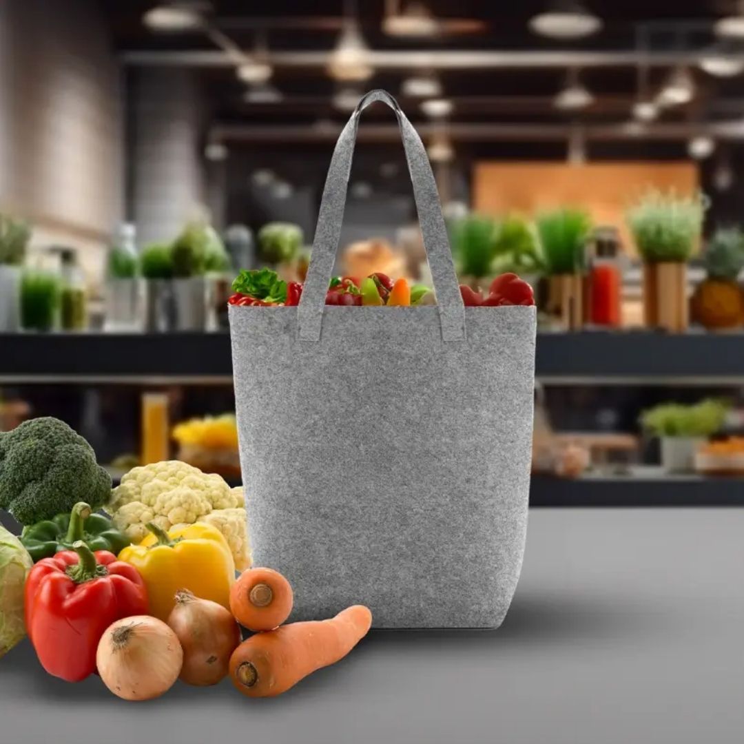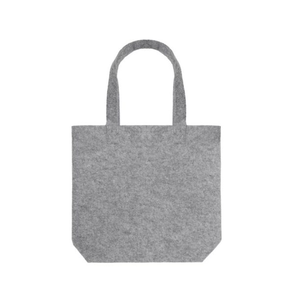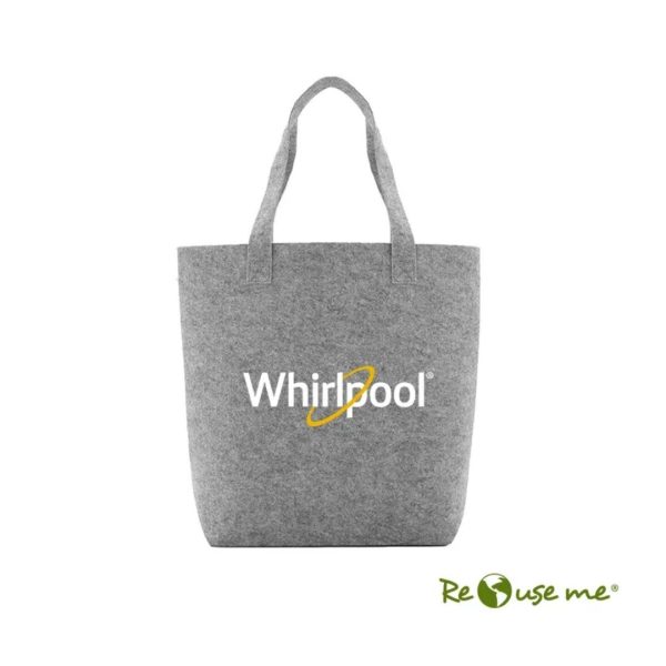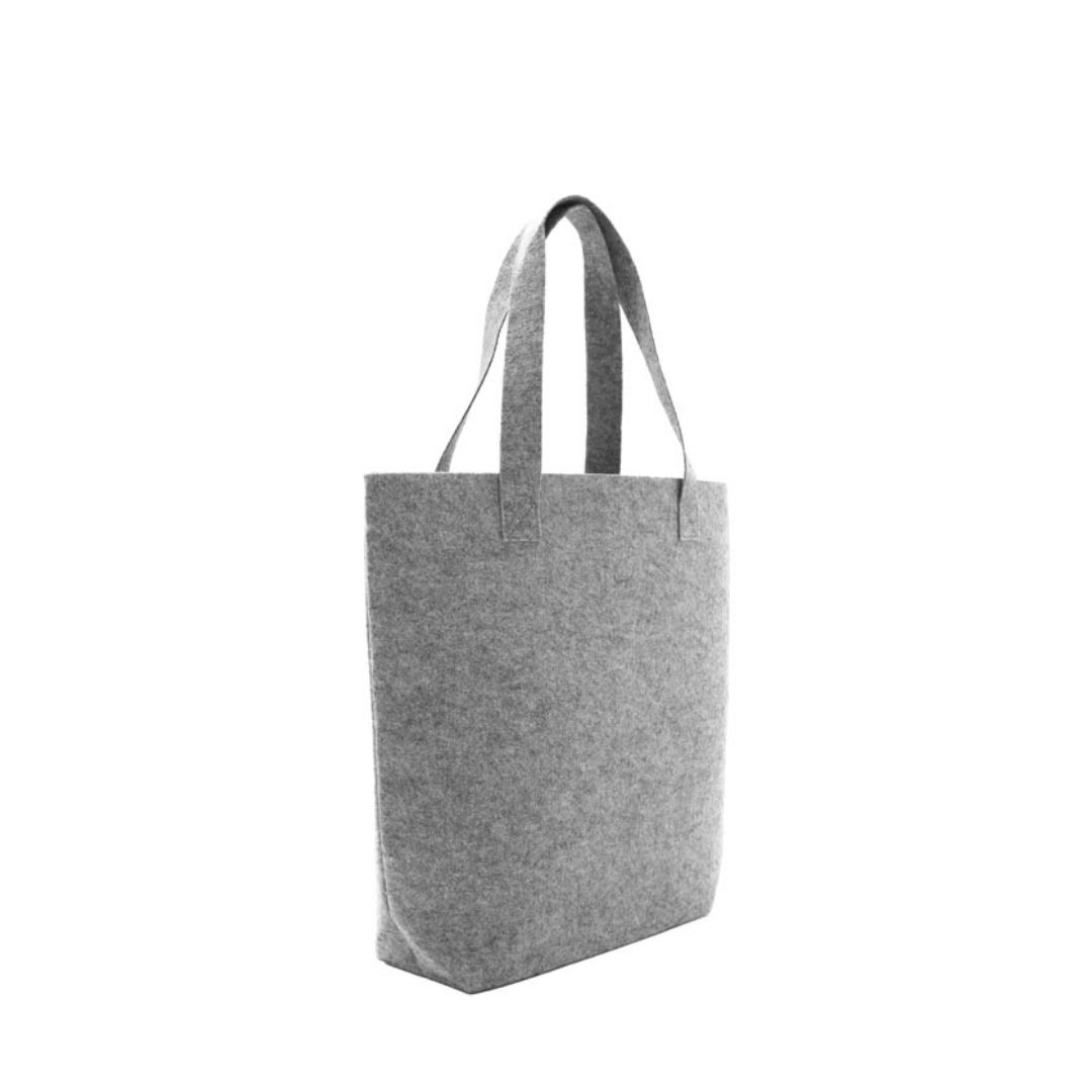 Descripción general del producto: Bolsa tote confeccionada en fieltro reciclado color gris. Cuenta con dos correas de 70 cm para colgar al hombro. ReUseMe.