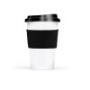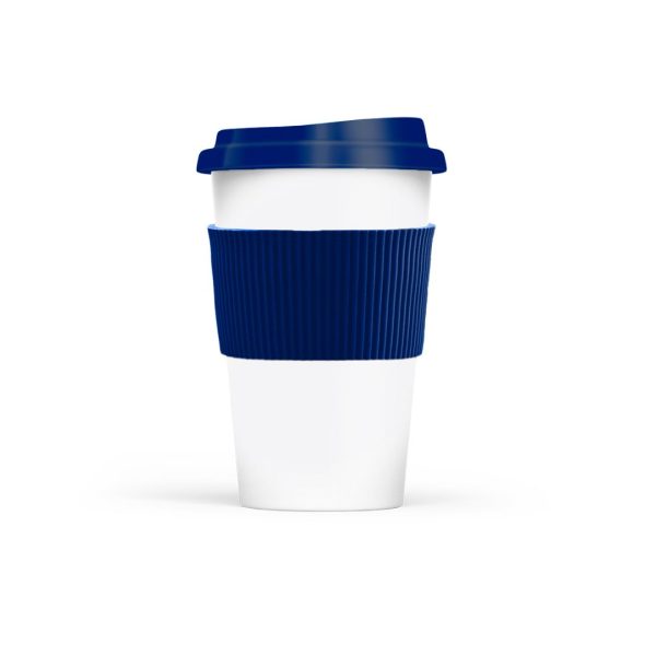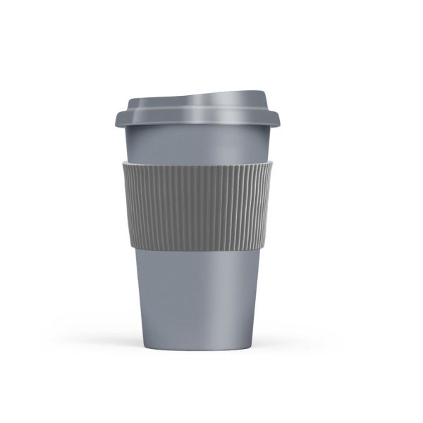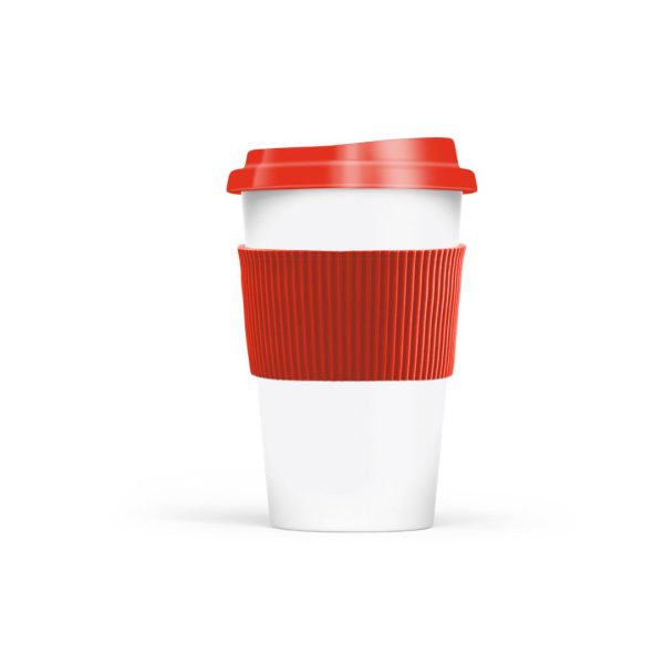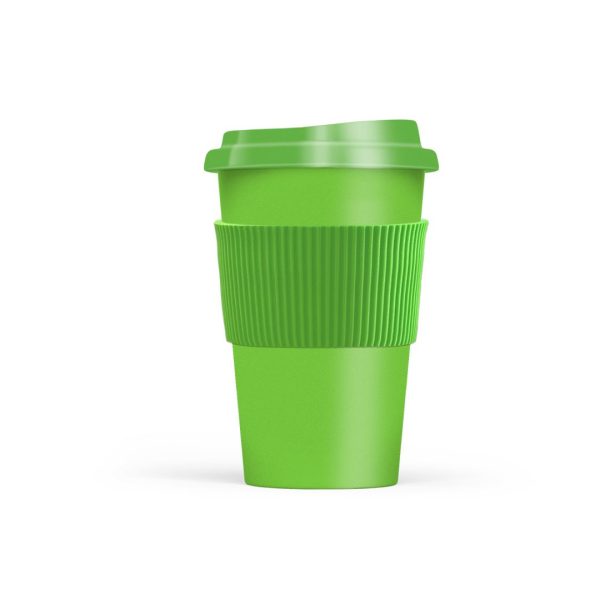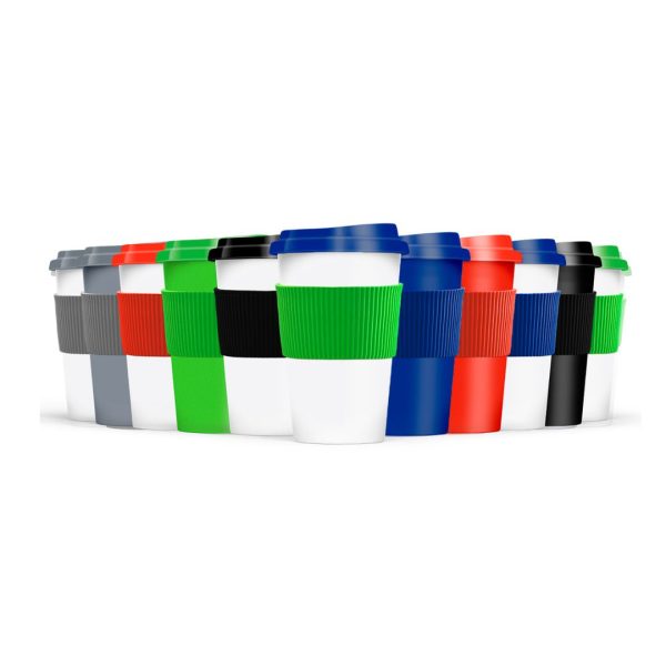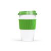 Descripción del producto: Vaso reutilizable fabricado en polipropileno con tapa de plástico duro y grip siliconado. Ideal para café, té y mate cocido. Capacidad 300 ml. Libre de BPA. Medidas: 14 cm alto - Ø5,5 cm base - 9 cm tapa.